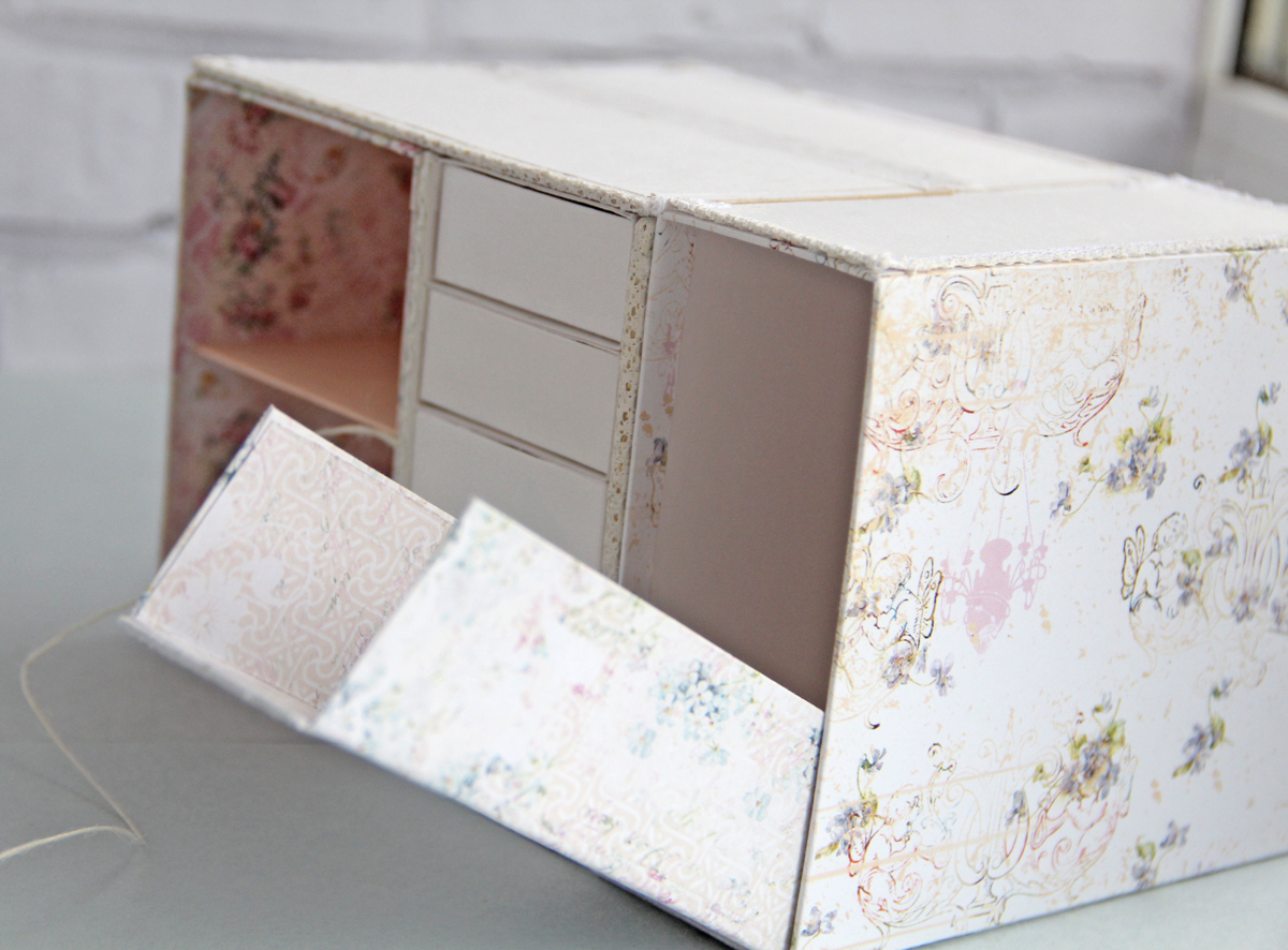 Между слоями я вклеила шнурок - уже сейчас я думаю о креплении дверцы шкафчика.