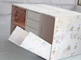 Между комодом и отделом с полкой, назовем его условно шкафчиком, я проложу пивной картон оклеенный кружевом. Этим я добьюсь более четкого разделения на секторы и приятной глазу эстетики.