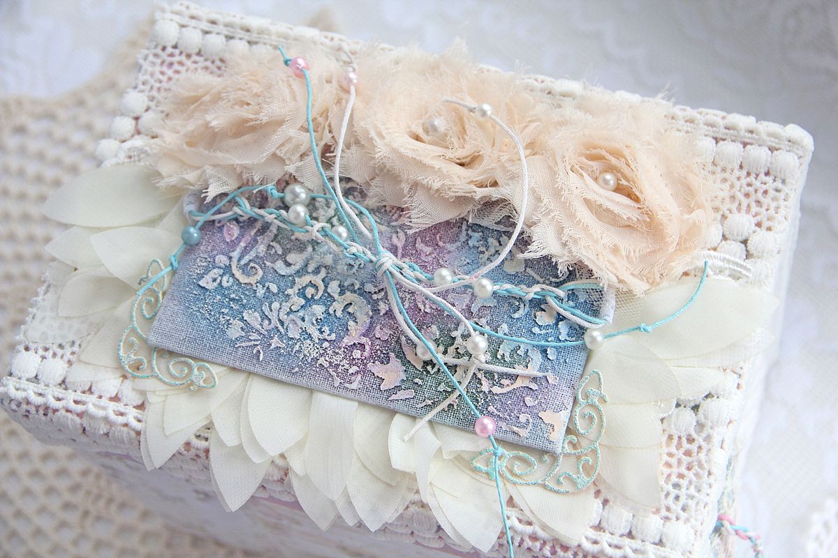 Крепим сбоку и сверху прикрываем кружевом или бумагой