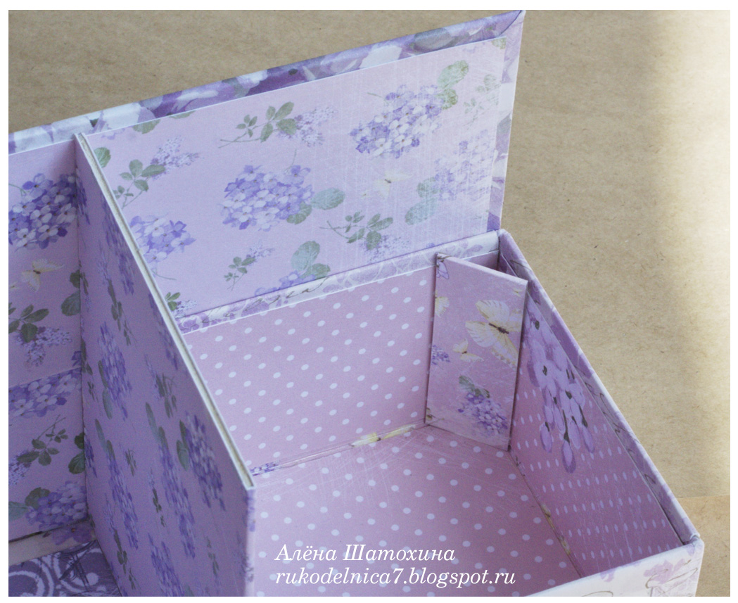 Увидев набор бумаги "Сиреневые мечты", я уже точно знала: будет шкатулка с какой-нибудь фишкой) Идея обрела свою жизнь, это здорово) Вот она моя красавица
