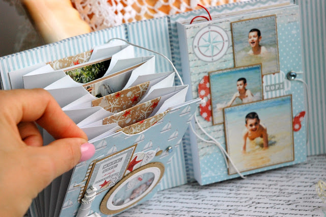 Набор бумаги у меня оказался 20*20, поэтому пришлось выходить из положения)) Перемычки в обложке я делала тканевые,так как бумажные у меня рвались(( а обложечку я сделала мягкую тканевую,уж очень я люблю альбомчики мягенькие)) Альбомчик получился добротненький и кармашки вместительные))