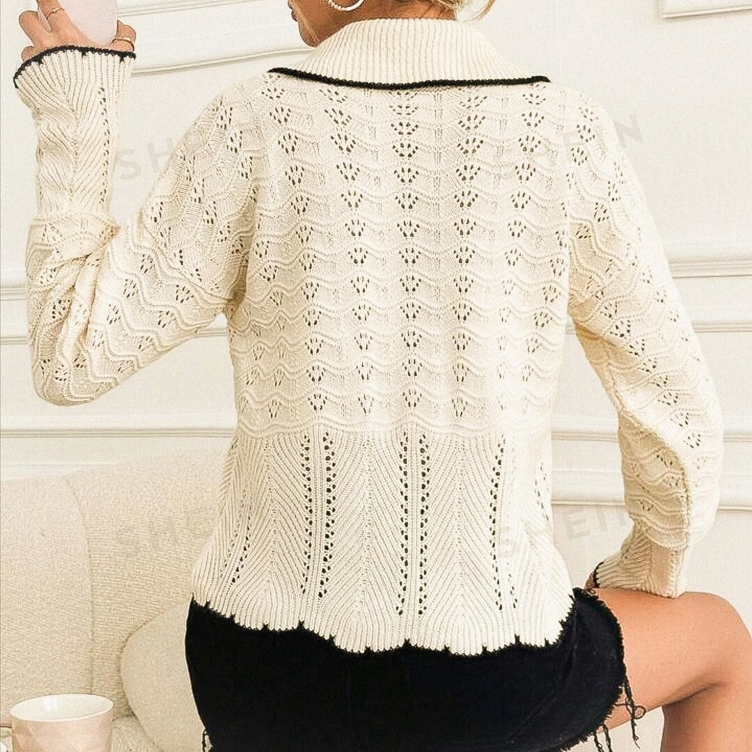 Схема вязания нижней части. Рисунок формируется на основе резинки один на один с накидами и симметричными им убавлениями петель путём провязывания по три петли вместе.