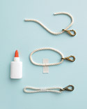 Закрепите концы веревки на тонком кусочке ткани, предварительно промазав ее клеем.