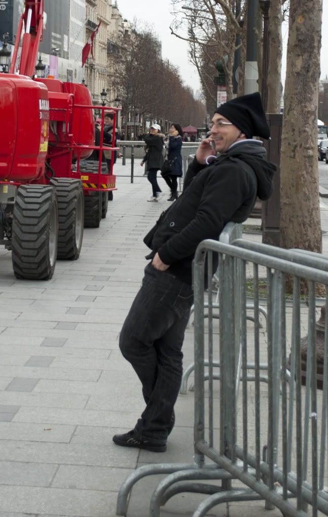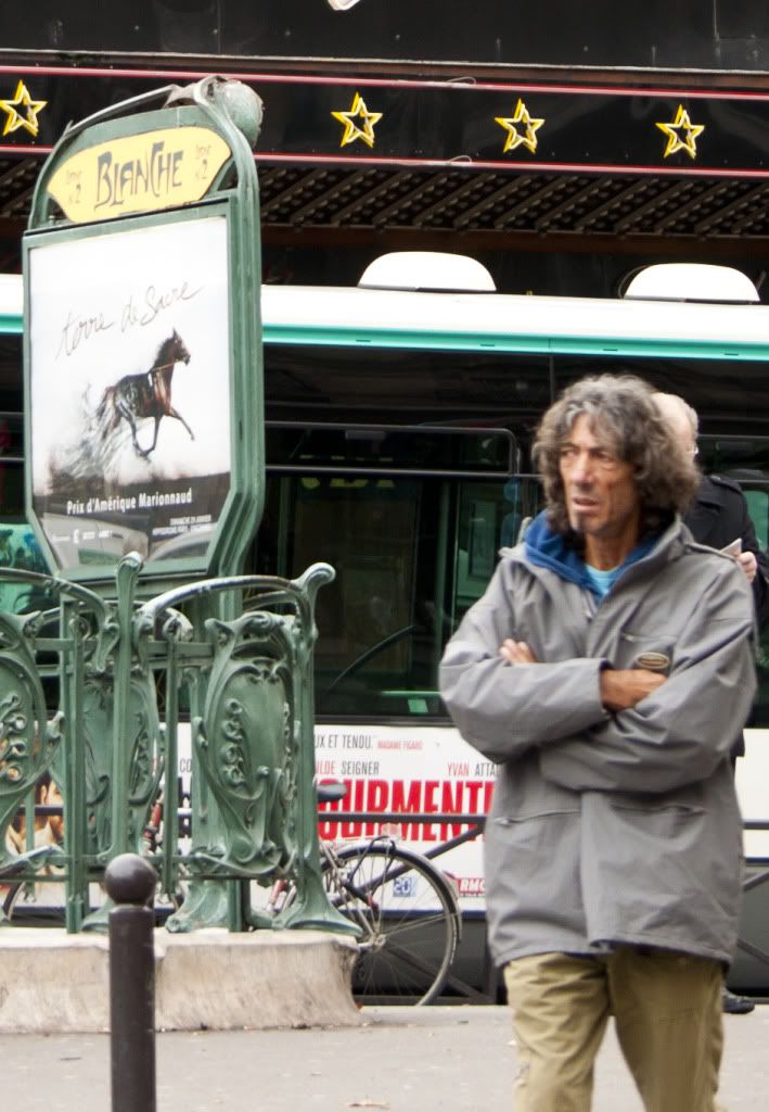 Дядька случайно попал в кадр - снимала здание за ним. А он как давай руками махать, фотку портить!! Мож знаменитость какая? :) кто знает? ...а я его у МуленРужа застукала, папарацци :)