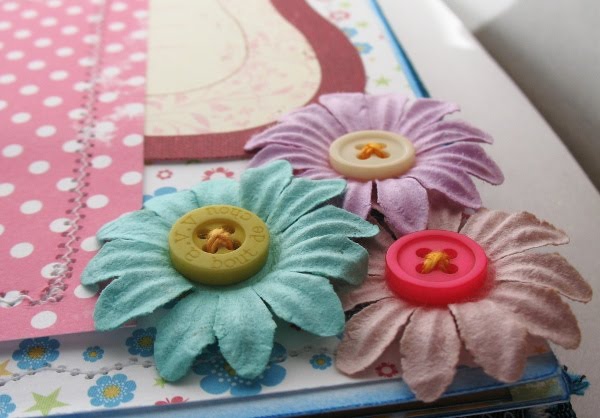 все очень просто ткань, картон, переплет гармошка ), скрап бумага, наклейкицветочки прима, лента, пуговички и пара-тройка страничек из наборов для журналинга