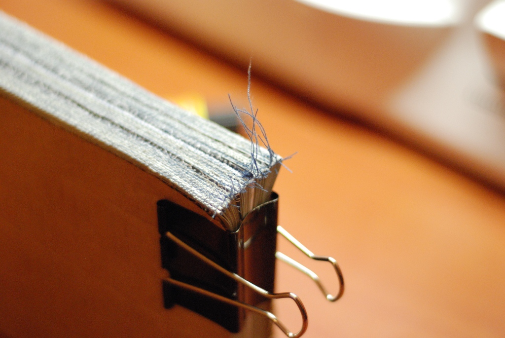 Хвостики ниток не обрезайте, мы их приклеим к корешку, так шов не разойдется.