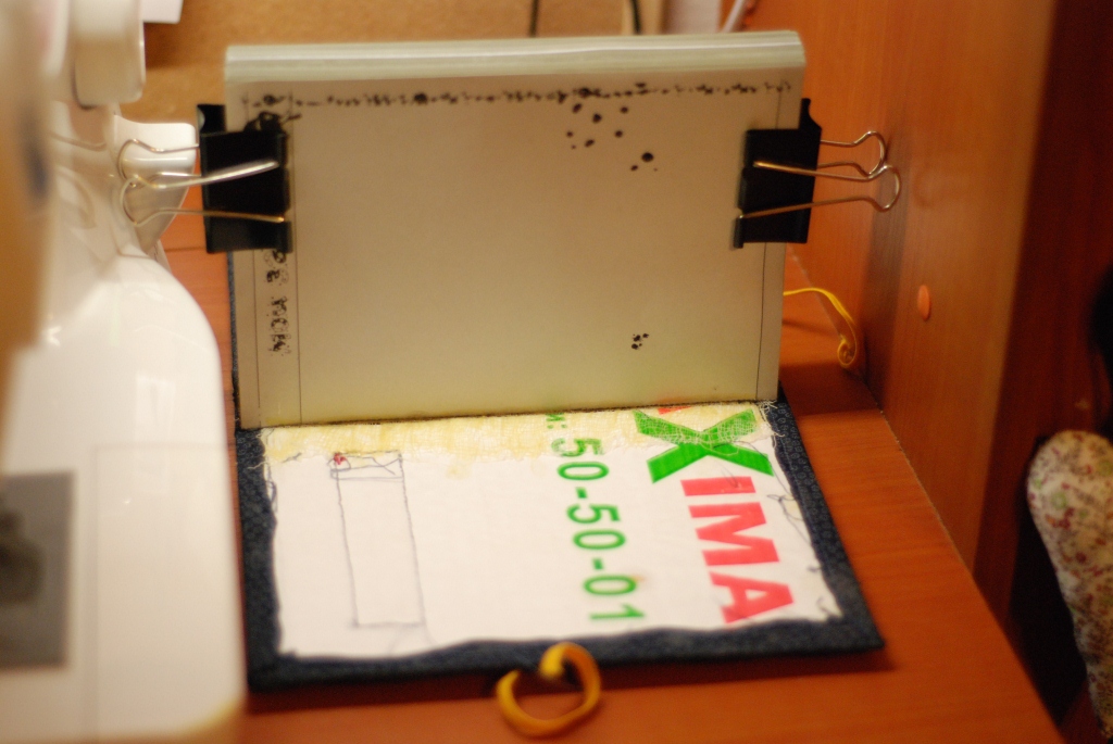 23. После того как ткань приклеилась, прошиваем со всех сторон нашу обложку на машинке.