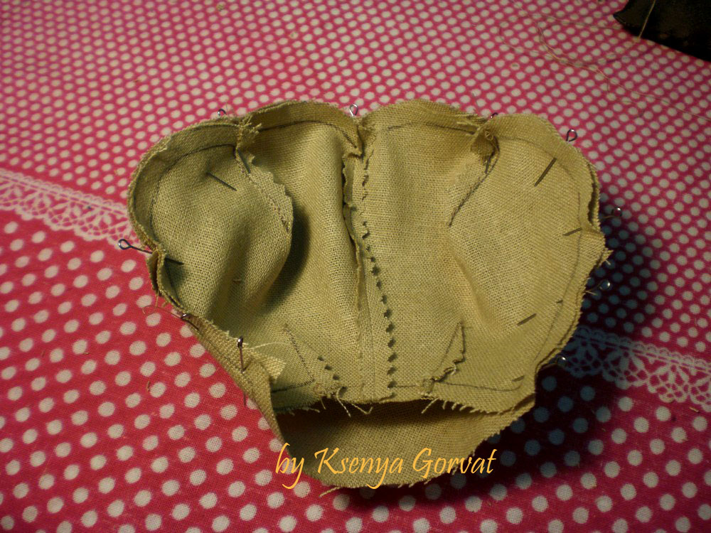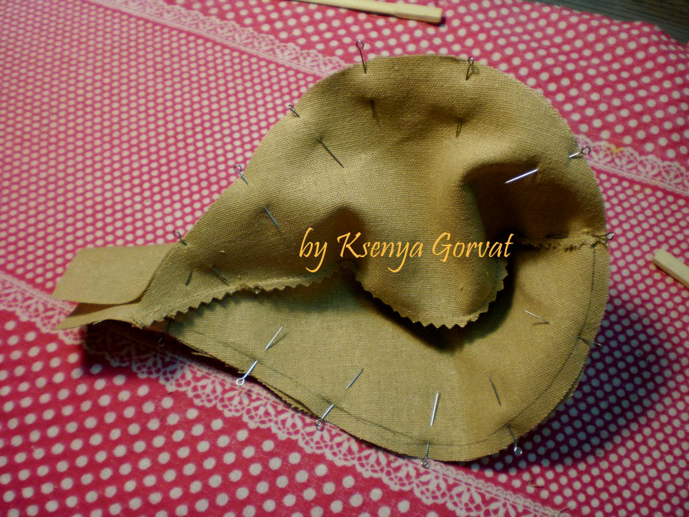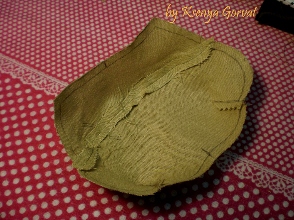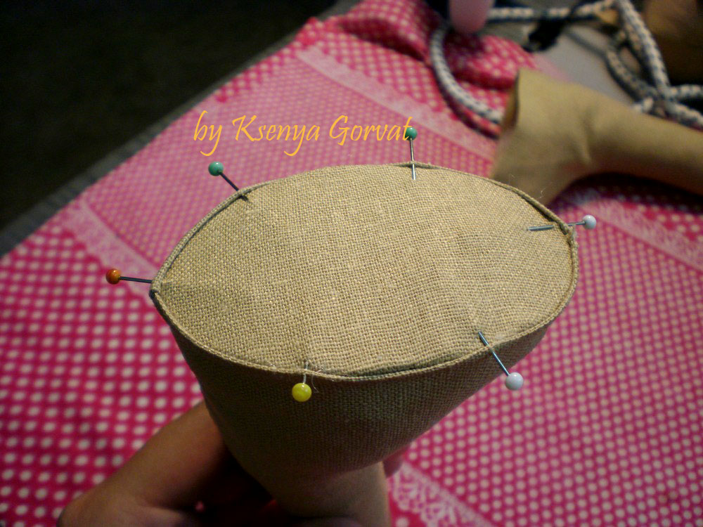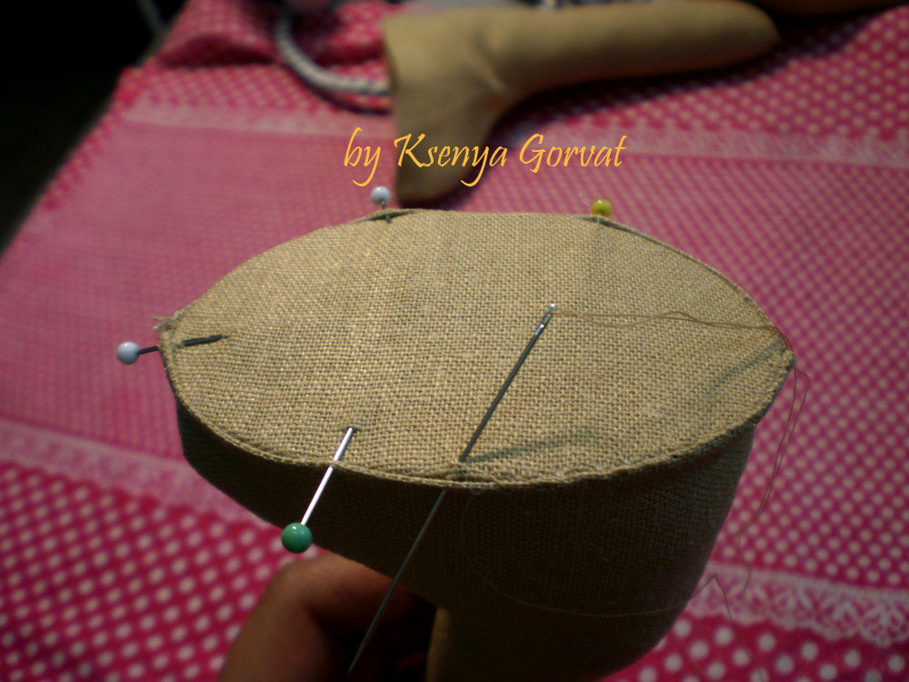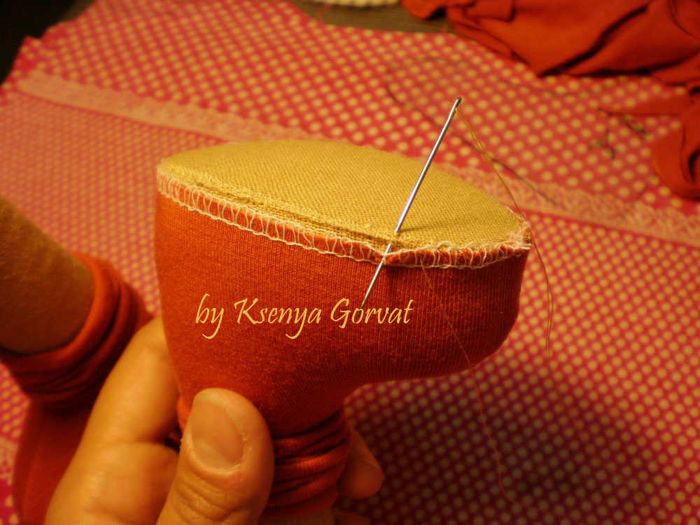 вставляем верхнюю часть головы и сшиваем, оставляя отверстие что бы вывернуть