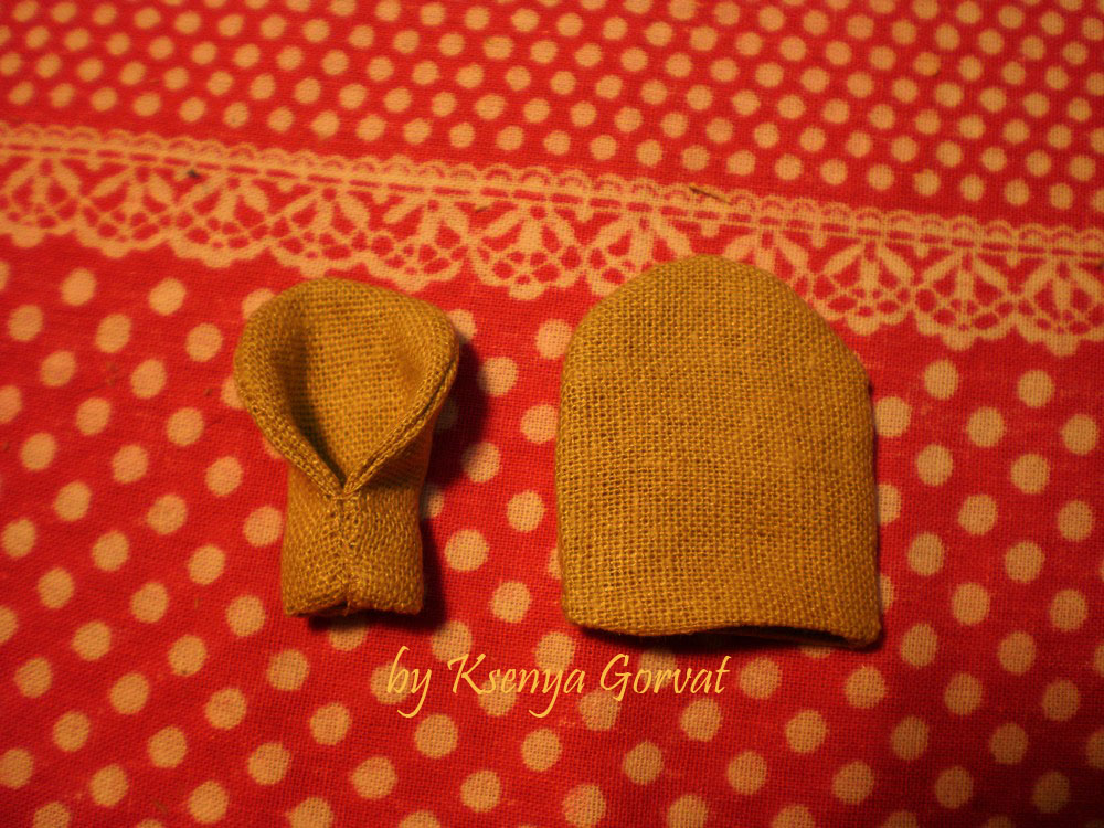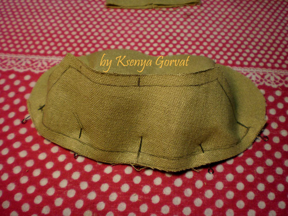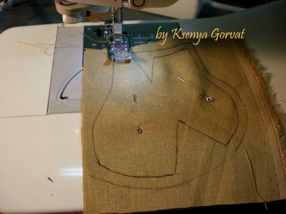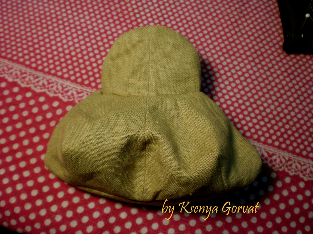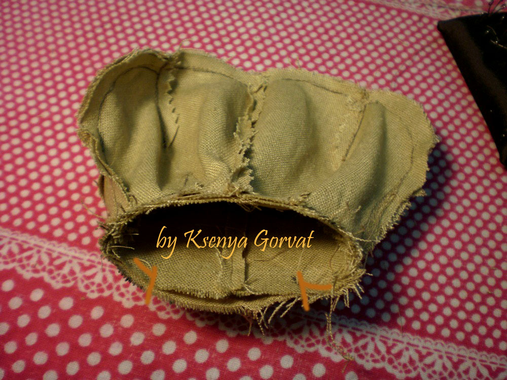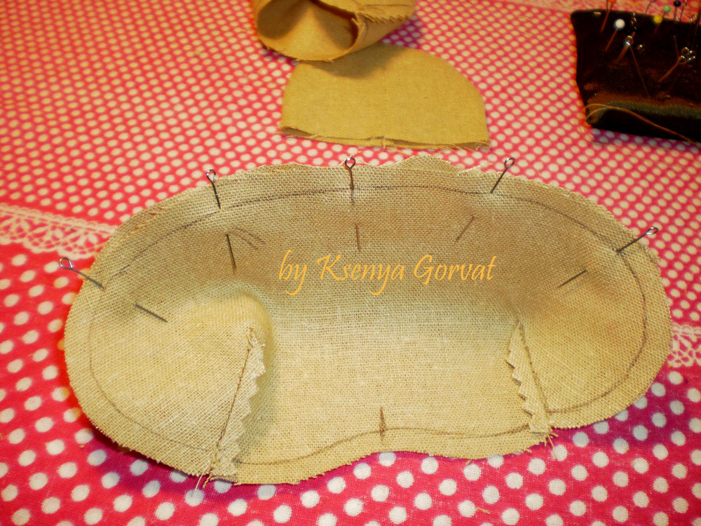 вставляем верхнюю часть головы и сшиваем, оставляя отверстие что бы вывернуть