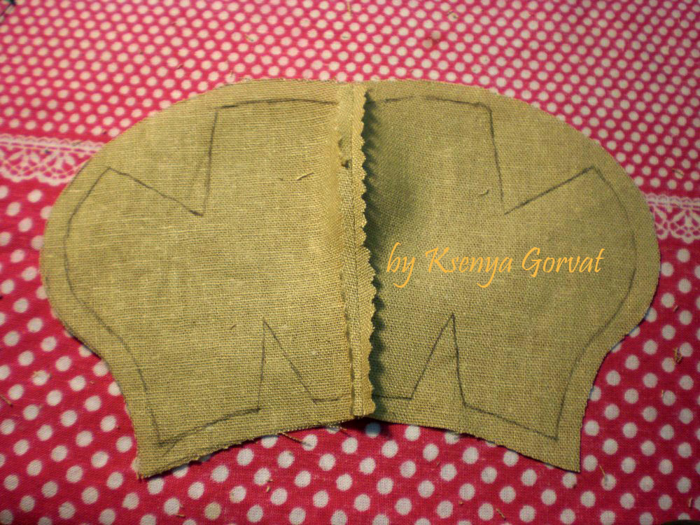 для деталей головы сшиваем два прямоугольника, что бы посередине у нас был шов