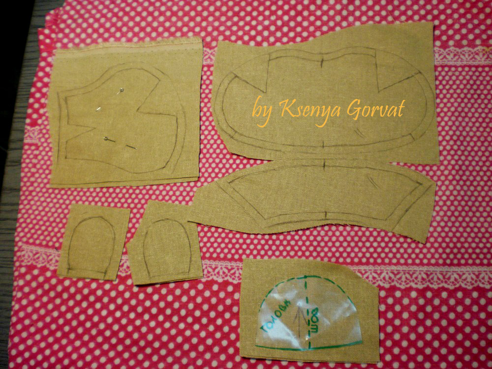 для начала переводим детали на ткань если ткань тянется, обратите внимание на раскладку деталей у меня ткань тянется немного в поперечном направлении