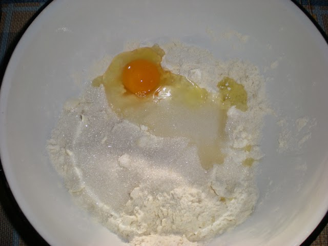 Вначале нужно заняться песочным тестом. Для его приготовления холодное сливочное масло натереть на крупную терку. Добавить половину стакана сахара, муку и 1 яйцо.