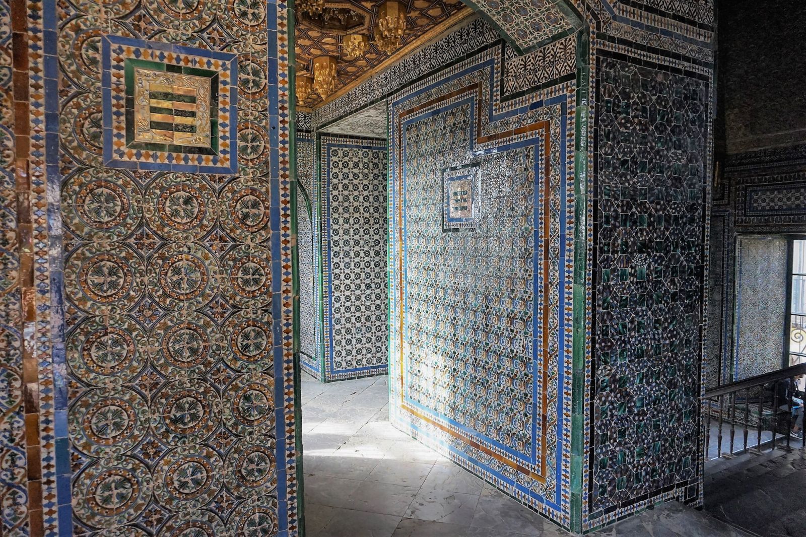 К центральному дворику прилегает выложенная керамикой лестница, ведущая на второй этаж. Уже сама лестница может гордо считать себя произведением искусства. Так как особо важных гостей принимали на втором этаже в более приватной обстановке, нежели ходатайства простых смертных, то парадная лестница, с одной стороны, должна была подчеркнуть значимость дома, а с другой, служила плавным переходом из части дома, открытой для публики, в приватную.