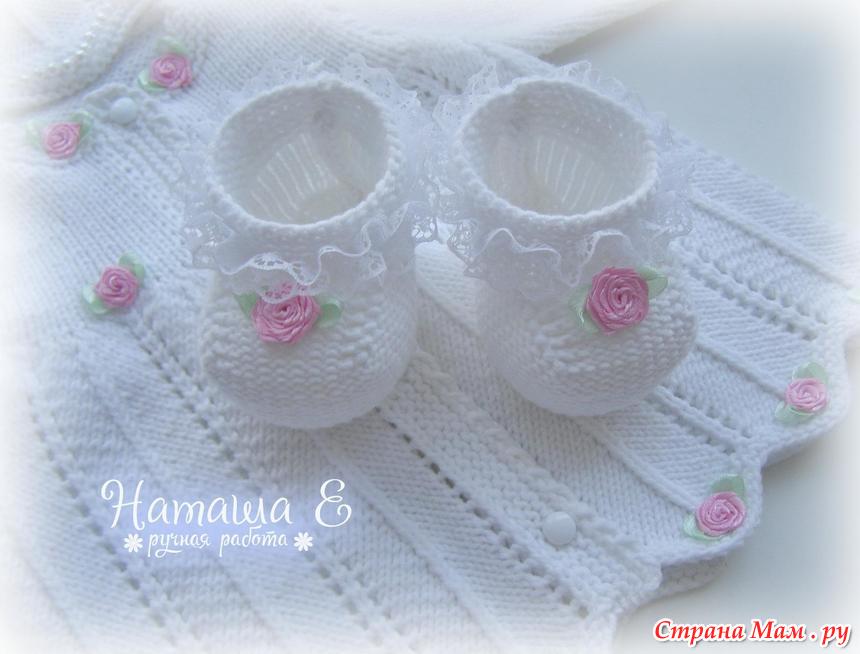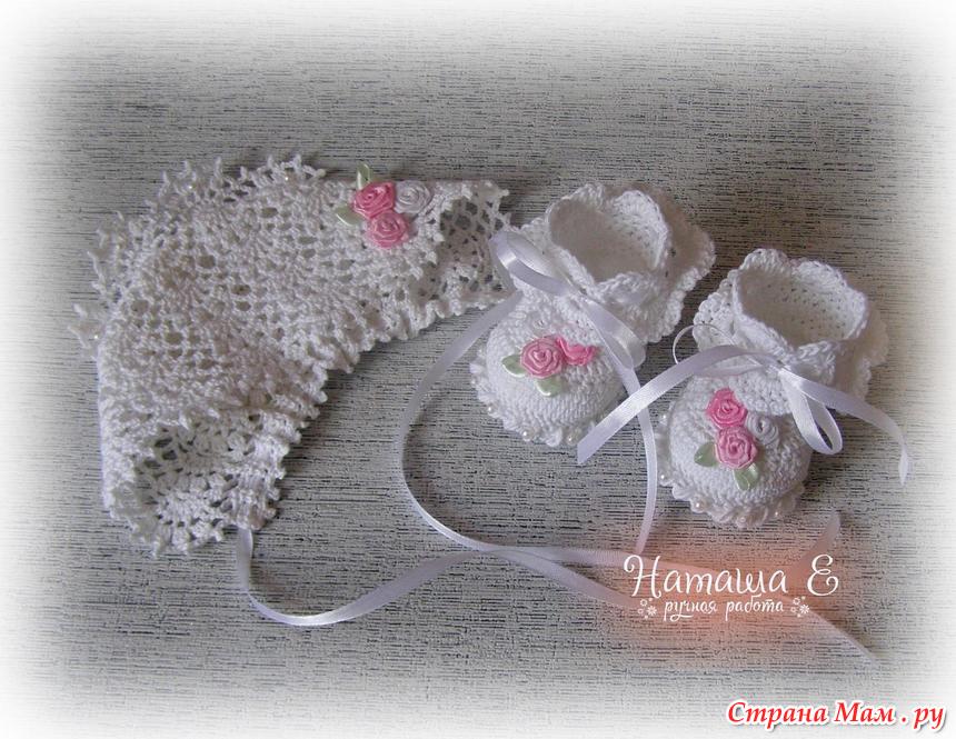 На заказ был связан комплект на выписку, пряжа Джинс.