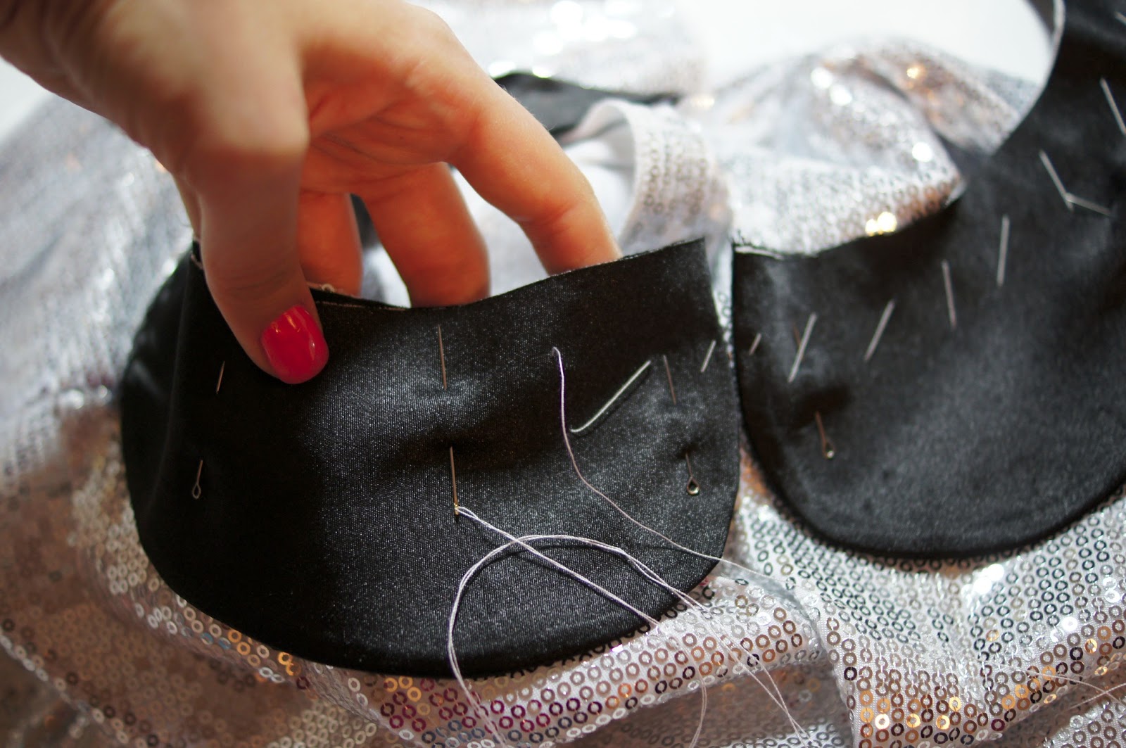 утюжим на среднем температурном режиме через марлю. Следов от булавок не должно остаться, в середине процесса булавки необходимо убрать!
