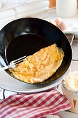 Яйца взбить с молоком , посолить и приготовить омлет. Готовый омлет слегка остудить, нарезать соломкой . В тарелку положить кусочки мяса, омлет и залить горячим супом.