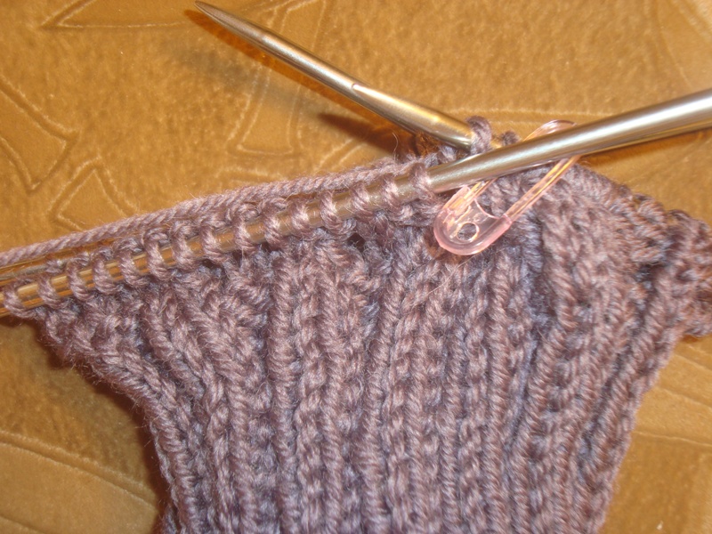 Набираем крестообразным набором 52п+1п., чтобы замкнуть круг, т.е. последнюю и первую петлю провязать вместе, распределив на 4 спицы.