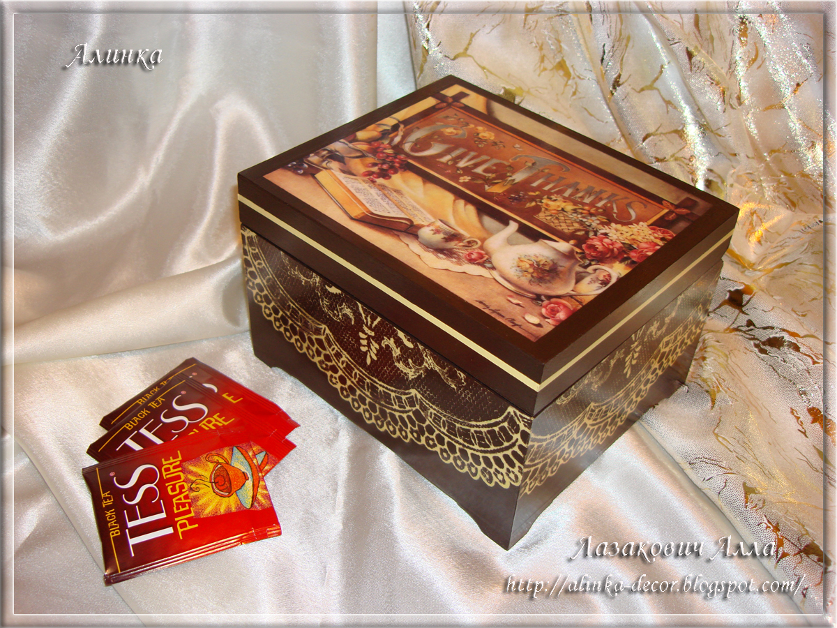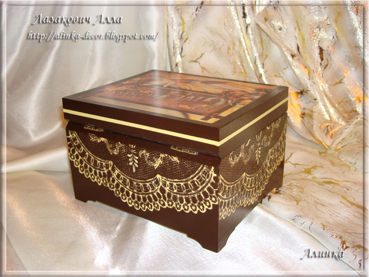 Первая моя шкатулка в технике декупаж. Шкатулка из липы. Автор изображения на шкатулке компьютерный график Цыганов Виктор Захарович. По бокам акриловые краски.