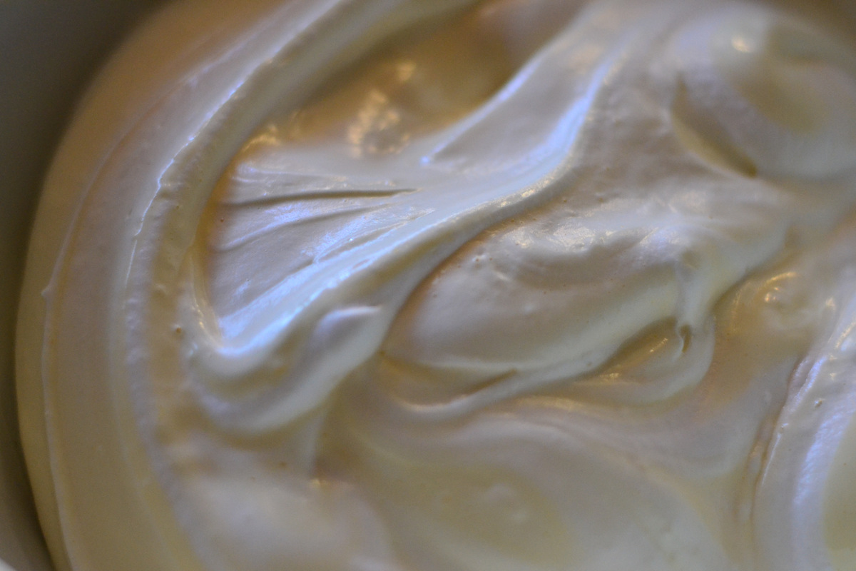 Отдельно взбить белки до мягких но устойчивых пиков с остальной половиной нормой сахара,не забыв в самом начале взбивание капнуть пару капель лимонного сока. Я еще добавляю немного сахарной пудры, где-то ложку, так белки точно не осядут.