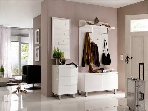 Ну здесь тоже вы не узнаете чего-то принципиально нового. Для маленькой прихожей идеальным вариантом будет светлая цветовая гамма, которая добавит легкости и зрительно увеличит размеры комнаты. Белый цвет отлично подойдет для данных целей, однако он слишком быстро пачкается (особенно при наличии в доме маленьких детей и животных), так что можно остановиться на других цветах с большим содержанием белого. Это может быть голубой, светло-фиолетовый, кофе с молоком, салатовый, бежевый. Еще такой момент, если ваша прихожая узкая и длинная - избегайте продольный полос, так как они еще больше вытягивают и сужают пространство. В данном случае пол и обои светлых оттенков визуально расширят комнату.