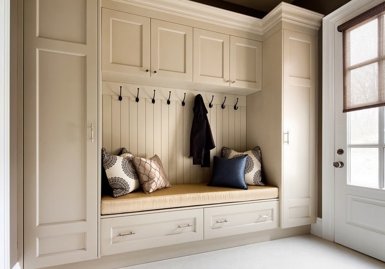 Как по мне, в прихожей очень сложно обойтись без мягкого пуфа или небольшой скамейки. Это то место, куда можно присесть, чтобы надеть или снять обувь. Там можно отдохнуть в ожидании припозднившегося со сборами любимого человека, можно бросить сумку или верхнюю одежду. Под скамью можно ставить обувь и она заметно украсит ваш интерьер, сделав его более уютным и комфортным.