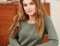Лаконичная модель становится интригующей, если добавить симметрично расположенные просвечивающие узоры по линии реглана и снизу на рукавах.