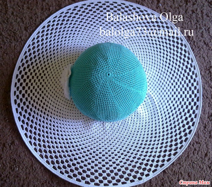 Связала шляпу для Наташи из СМ, верх из сосо, поля из Novelty, крючок № 1.25