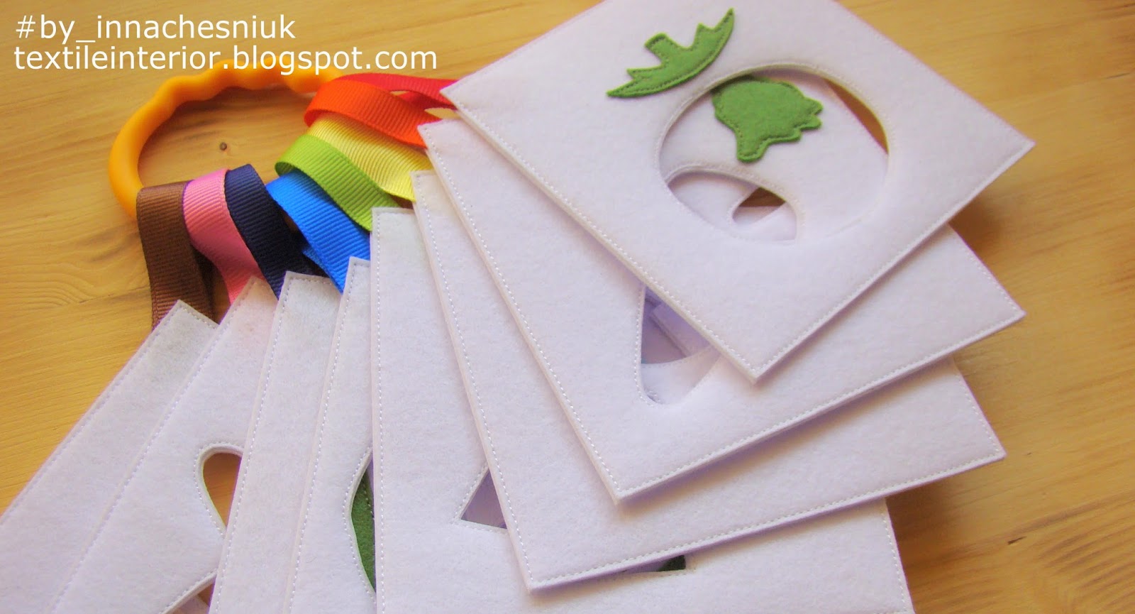 Полюбившаяся многим тема трафаретов теперь с дополнениями и новыми прорисовками. Известно, что при изучении цвета и оттенков важна так называемая "форма цвета", т.е. когда визуально цвет очерчен определенной формой. И для самых маленьких сшились вот такие трафареты-формы, соответствующие определенной картинке в книжечке. А чтобы было играть максимально легко и интересно, на трафаретах добавлены подсказки-аппликации и хвостик-петелька соответствующего цвета.