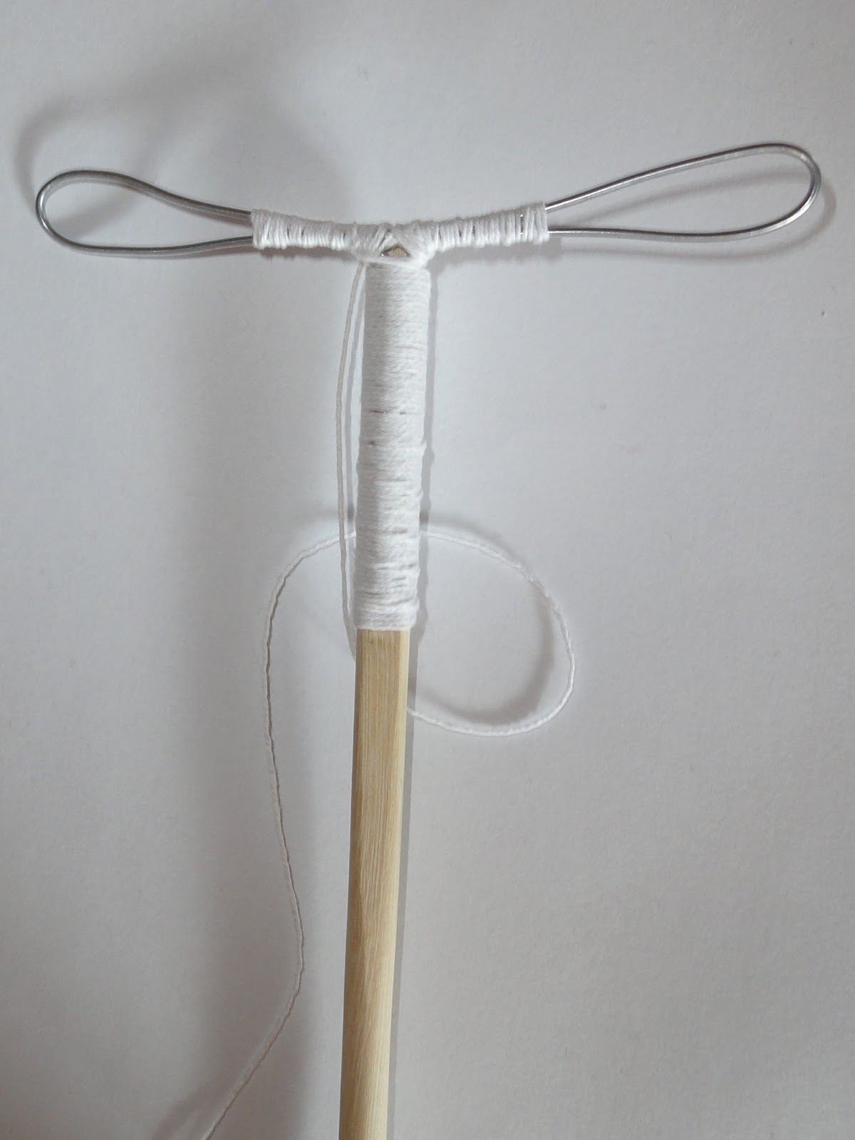Прикрепляем резинку на талию к кукле и потом надеваем куклу на палку.