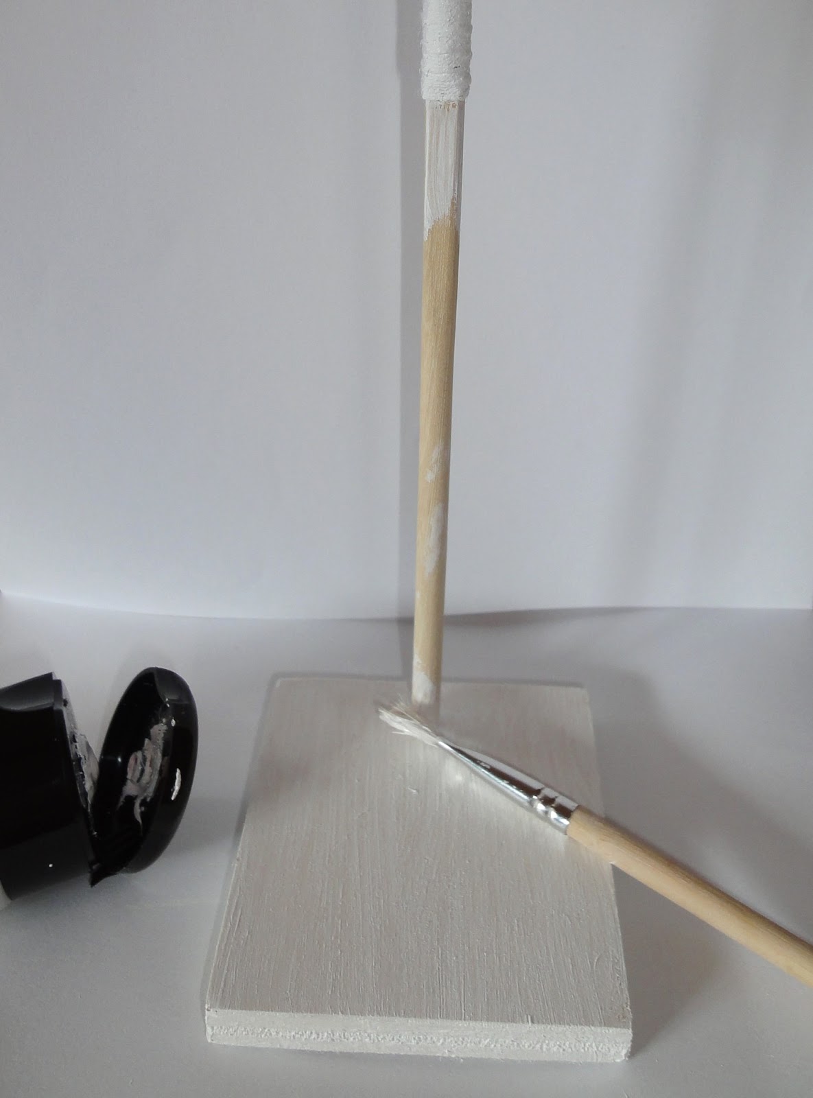Красим нашу подставку в любой понравившийся вам цвет, но желательно, чтобы цвет подходил к наряду куклы. Я крашу в белый цвет.