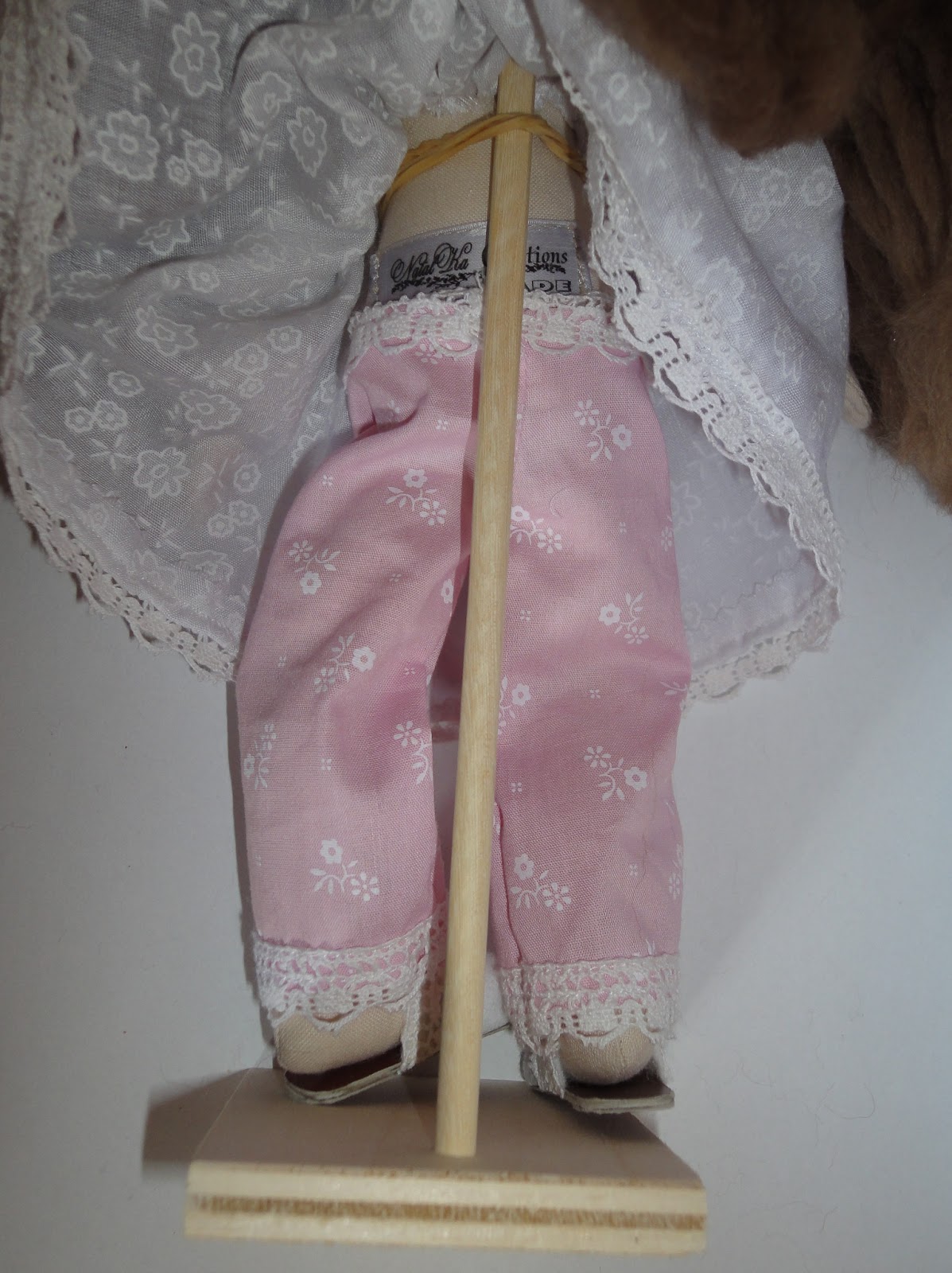 Вот так кукла стоит на подставке. На первых порах я вполне обходилась такими подставками, так как куклы имели длинные платья и вся подставка полностью была скрыта. Правда, такой способ не дает оптимальной устойчивости. Поэтому в следующей части я расскажу, как сделать подставку для куклы функциональнее.