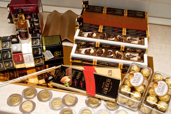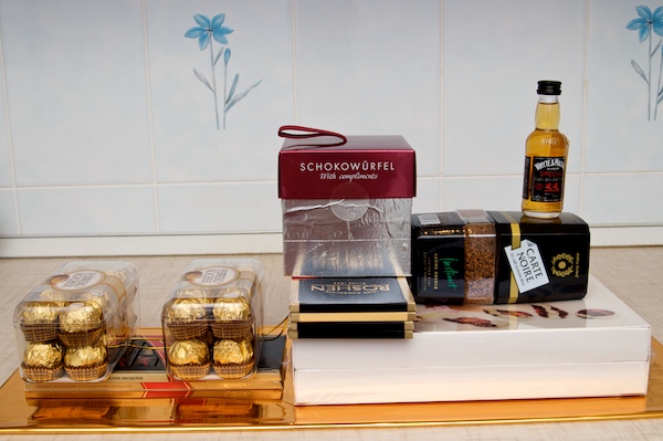 Для этого мне, конечно, пришлось объехать ни один супермаркет нашего города, потому как подобрать размер банки кофе, коробки конфет (которая непременно должна была не открываться вверх, а выдвигаться в строну), шоколада и конфет должен был подходить друг к другу. Ходила я с линеечкой по магазинам, складывала конструктор прямо возле прилавков. Представляю, как я смотрелась со стороны...... :). Итак всё закуплено, хватит или не хватит - покажет процесс.