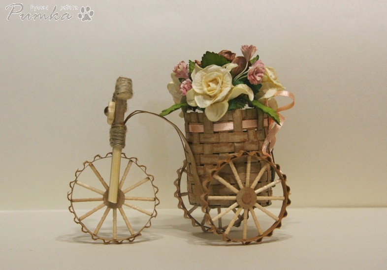 9. Как только клей схватился отрезаем лишнюю палочку оставив примерно 1 см. Торцы палочек лучше по возможности зашкурить. Приклеиваем сверху две полосочки из крафт бумаги "острой" буквой "V", обмазываем клеем и обматываем упаковочным шпагатом: