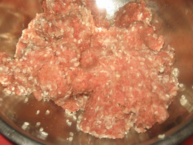 Смешать с фаршем. Идея такая, чтоб при приготовлении фарш не слипся в одну большую котлету. Так его проще равноверно перемешать.