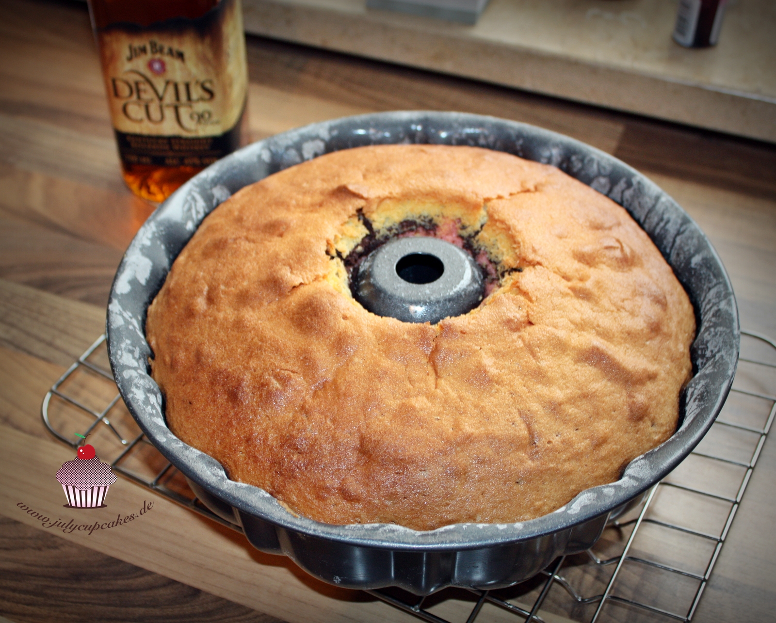 В то время как кекс находится в духовке, готовим сахарный сироп для пропитки. Поместите воду и сахар в кастрюлю и доведите до кипения. Варить на медленном огне, пока все кристаллы сахара не растворятся. Сиропу дать немного остыть. Сироп я разбавила с виски "JIM BEAM" в пропорциях 1:1. Это придало неповторимую нотку неаполитанскому кексу. ОЧЕНЬ СОВЕТУЮ!!!!