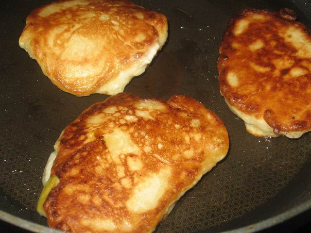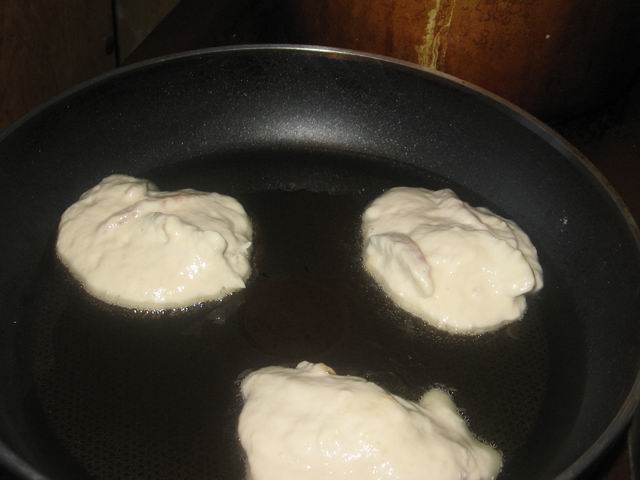 Выпекаем оладушки обычным образом с двух сторон с достаточным количеством растительного масло. Масло в тесто, как для блинов, добавлять не надо. А вот на сковородке его долно быть достаточное количество.