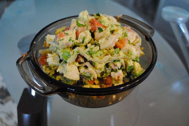 Как вы уже знаете, я нахожусь в постоянном поиске новых интересных салатиков без майонеза! Вот откопала очередной рецепт, попробовала, и пришла в буйный восторг! Во-первых, салатик очень полезный и здоровый: в нем нет ни майонеза, ни сметаны, ни даже растительного масла! Во-вторых, он позволяет утилизировать оставшуюся от вчерашней запеченной курицы грудку. И, в-третьих, он очень сытный и заменяет собой целый ужин. Итак, мой новый любимый салат!