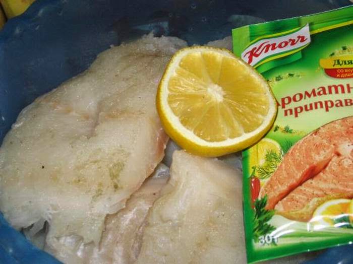 и замариновали с лимонном соке и приправе для рыбы