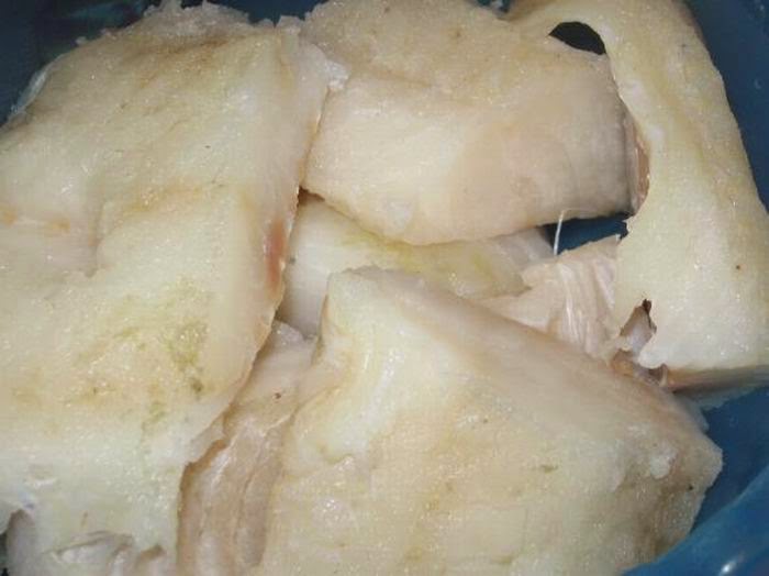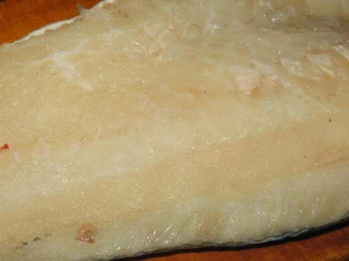 Треску мы нарезали порционно (небольшими кусками)