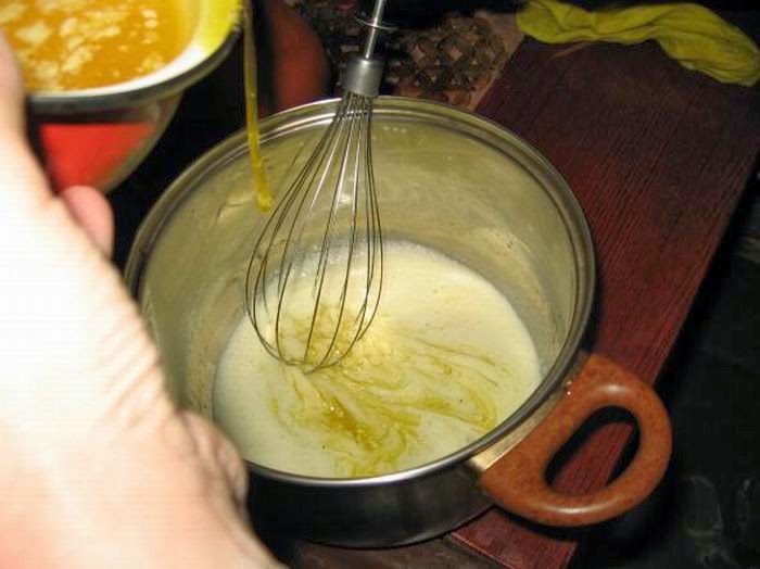 Как только у донышка смесь начинает белеть – немедленно вынимаем из водяной бани, иначе Ваш соус просто свернётся, что у меня было не один раз.