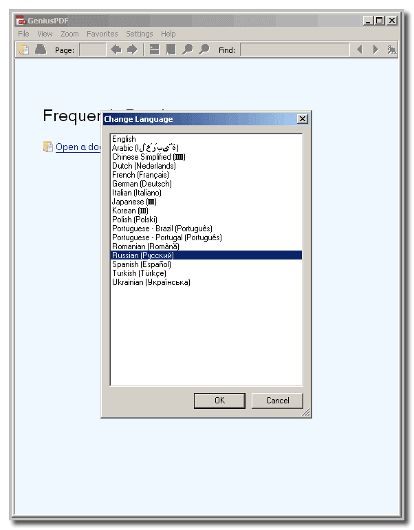 Есть у программы GeniusPDF и свои минимальные настройки. Мы можем выбрать нужный нам язык работы программы: