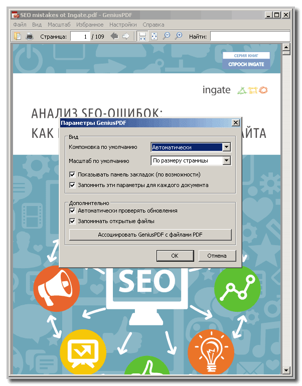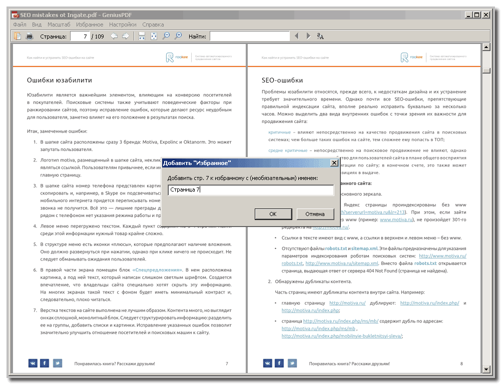 GeniusPDF. К этой программе применимо все, что можно охарактеризовать словом "самый" - это самая быстрая программа просмотра файлов форматов PDF, DjVu, ePub, MOBI, CHM, XPS, CBZ, CBR. Она же является самой "легкой" - ее размер не превышает 5 Мб, а развернутой портативной программы - около 7 Мб. Программа бесплатна, поддержка русского языка присутствует. В работе GeniusPDF очень удобна.