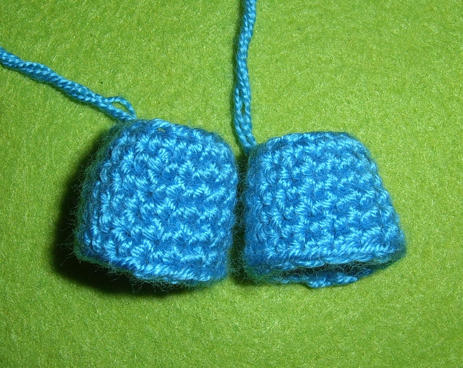 Сложить края детали вместе и провязать 4 сбн за оба края. Нить закрепить, оставить конец для пришивания и обрезать.