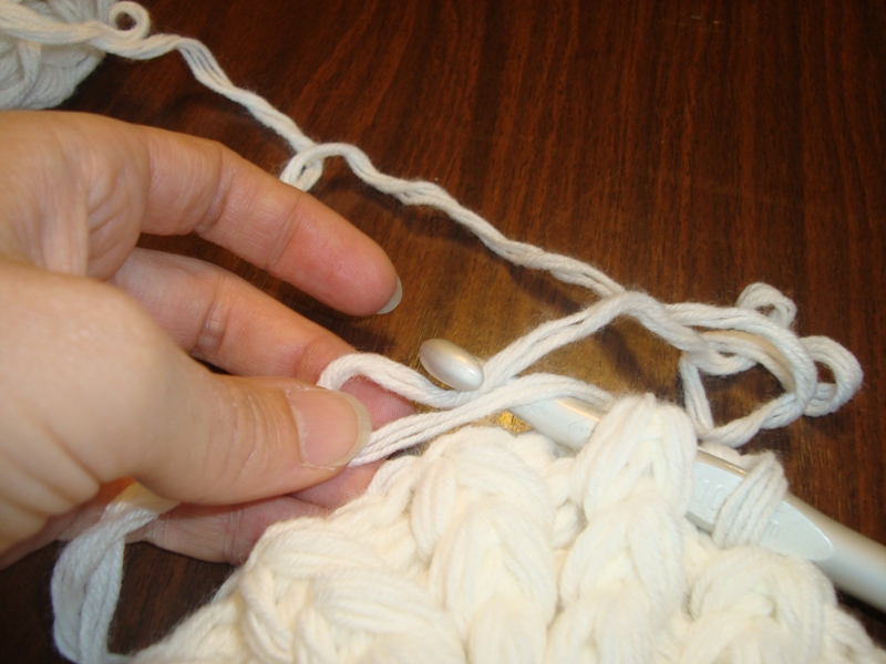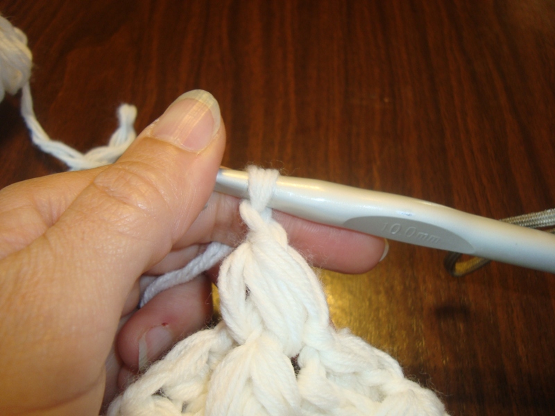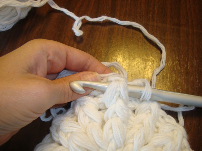 Крючок №10. Момент2: из-за особенностей вязки (рельефные столбики), изделие получается объемное и если взять потоньше крючок (что я сделала сначала, у меня был №5), вещь получается ооочень плотная, как коврик (далее я постепенно увеличивала №№ крючков, при этом распускала и начинала  сначала).
