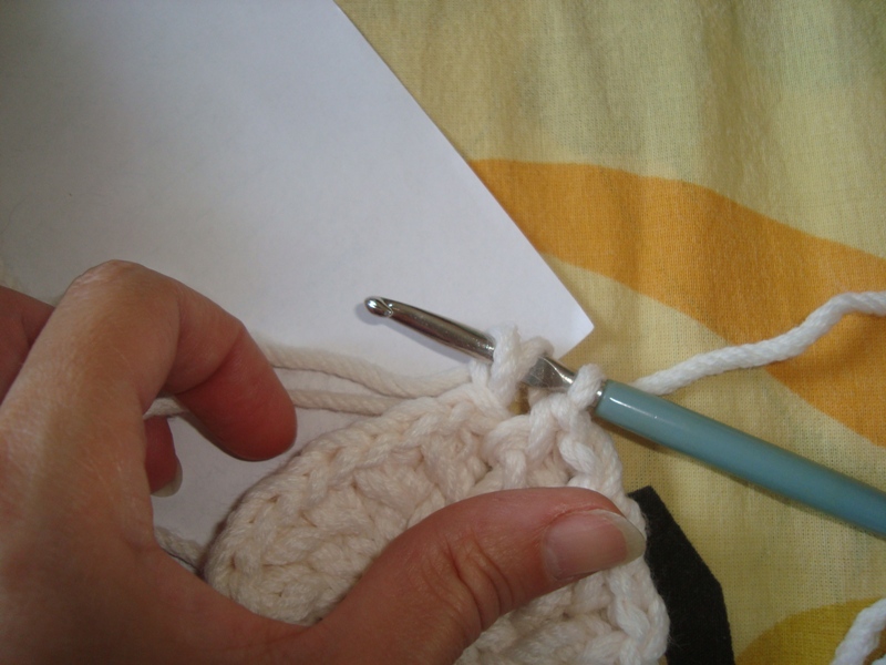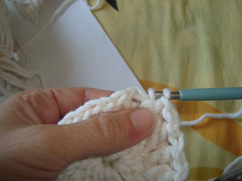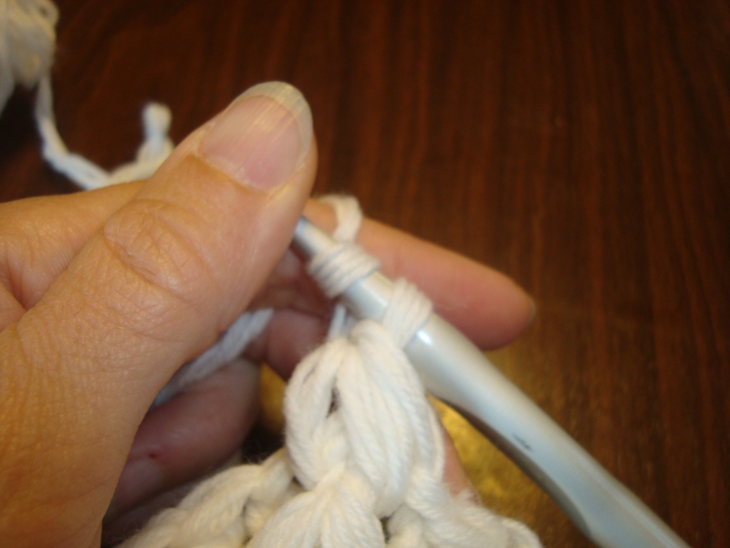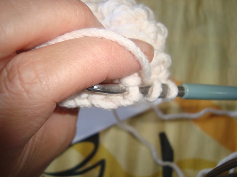 - 2р: из каждого ст.с/н вывязываем выпуклый ст.б/н (получается галочка) см.ниже, как я его вязала, а между выпуклыми ст.б/н вяжем 1ст.с/н