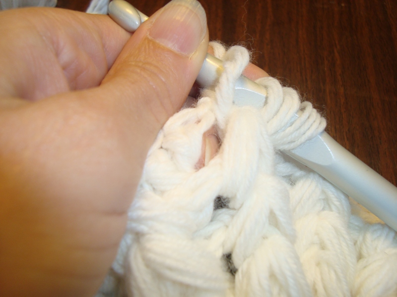 1р - уже писала, от булавки до булавки вяжем выпуклыми ст.б/н