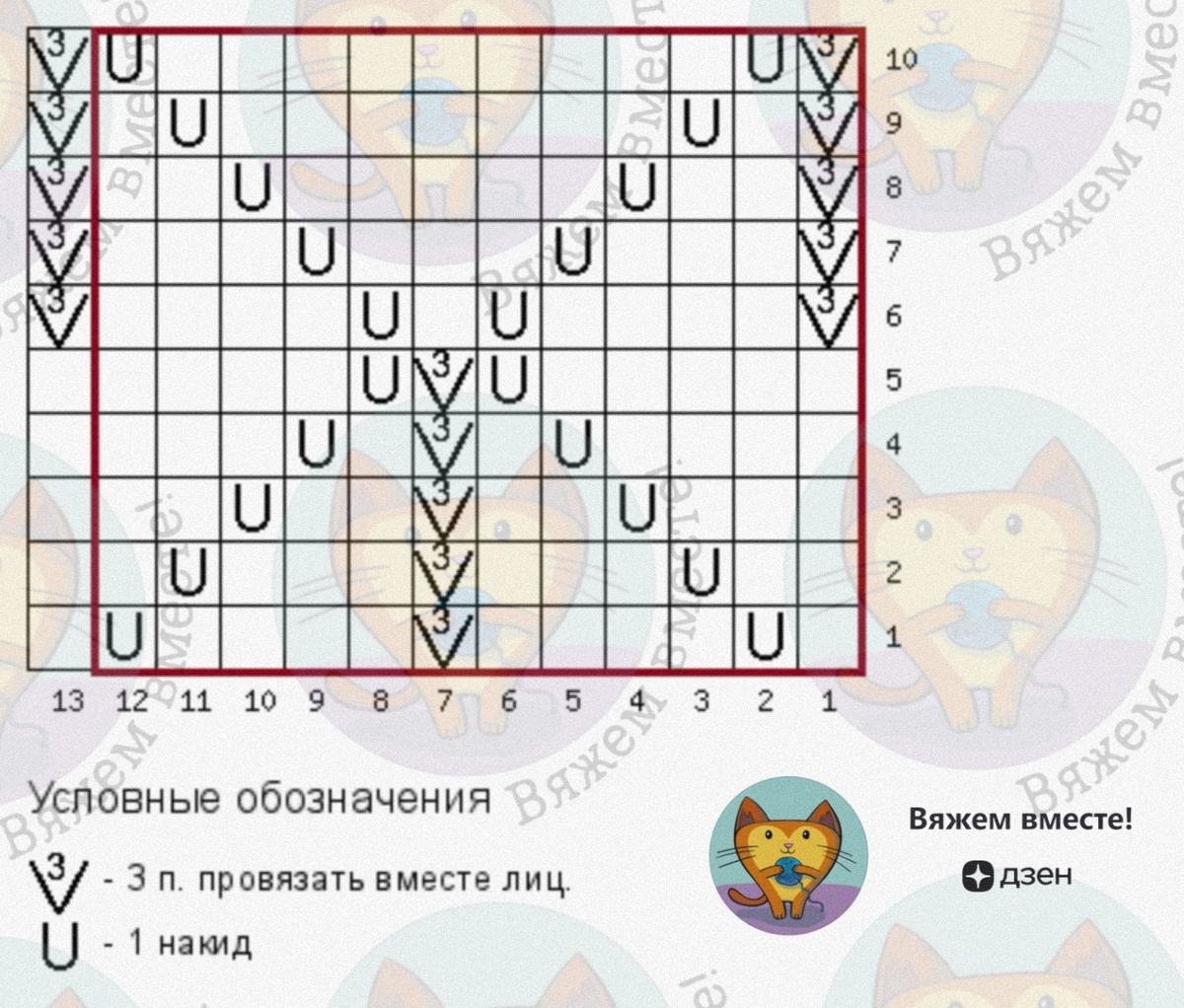 Ажурный узор вяжется весьма просто, если не брать во внимание тот факт, что придётся вывязывать накиды и убавления в каждом ряду.