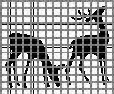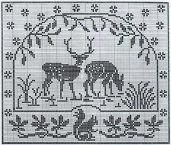 Олени в технике филейного вязания станут достойным украшением любого изделия, начиная от детской подушечки и заканчивая красивой занавеской.