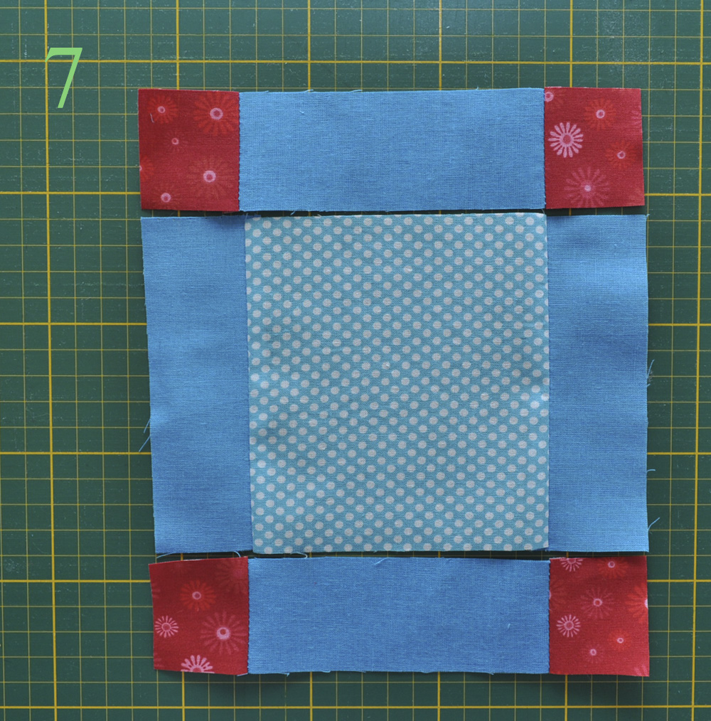 Пришиваем полоски к маленьким квадратам с противоположных сторон