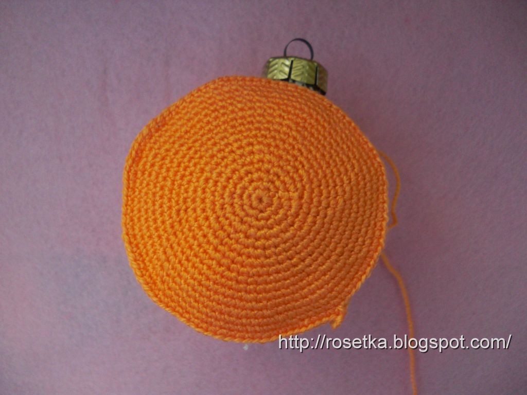 Провязав до упора, несколько рядов нужно выполнить без убавлений, чтобы не было зазора между колпачком шарика и вязаным полотном.